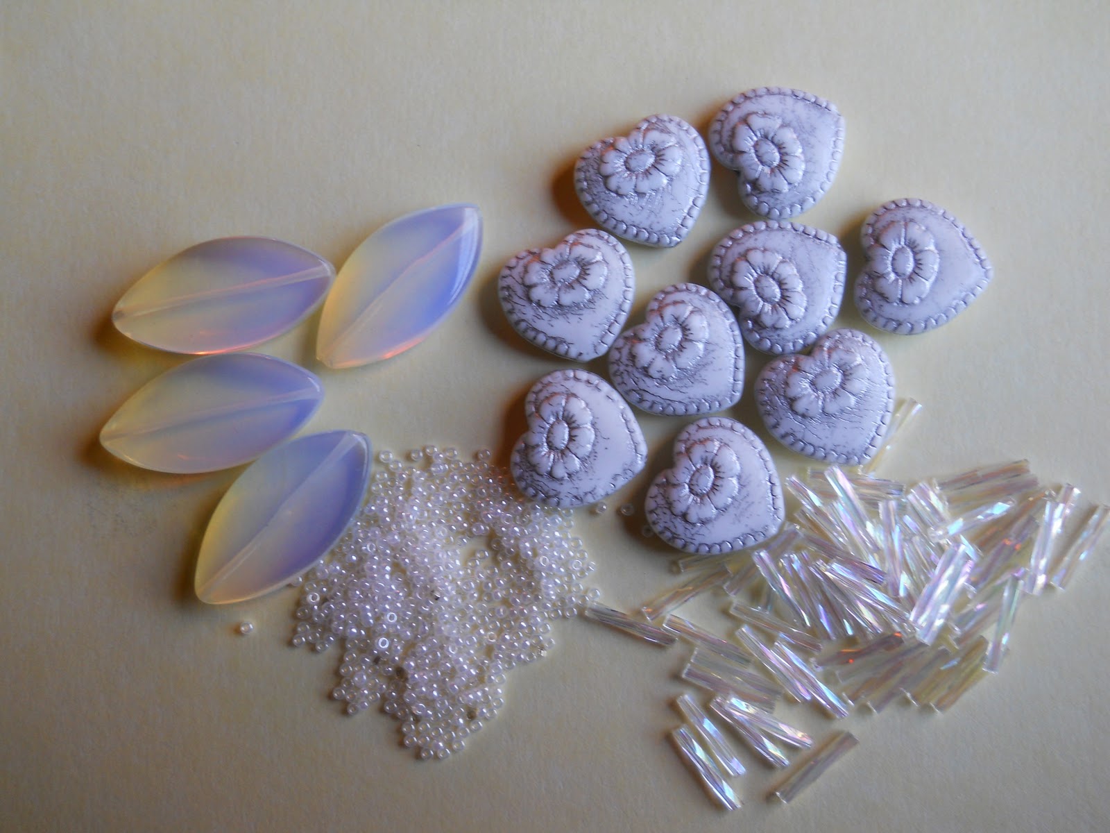 These are the beads I had in the basket. I have used all of them, except for the hearts, in one thing or another. I am still waiting for just the right idea to pop into my head for the hearts. I am sure when the right person comes along, those hearts will be the first thing I think of.